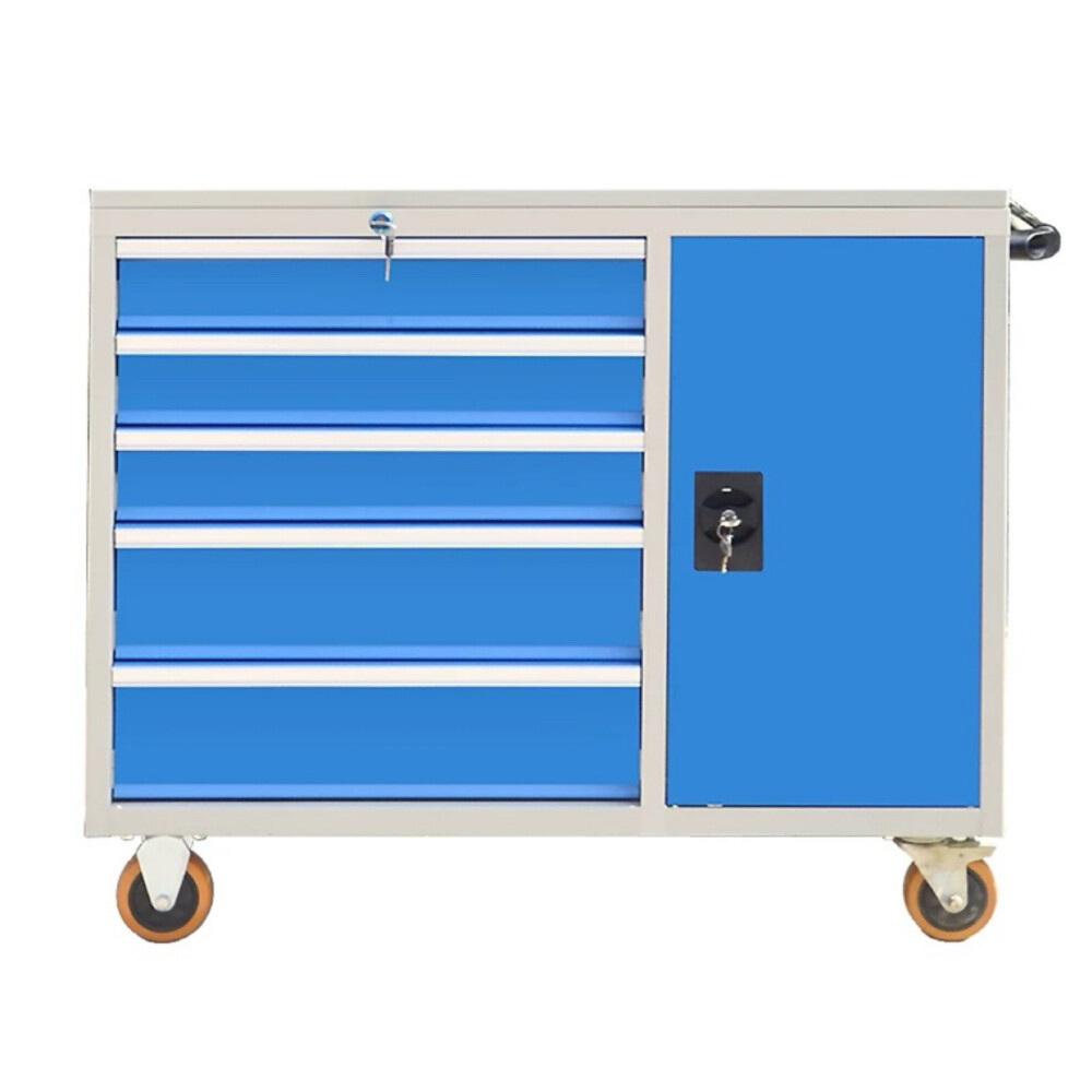 The LCY Steel Tool Cart is a robust solution for tool storage and organization. It features 5 drawers, providing ample space to categorize and store various tools. With dimensions of 1000×500×850mm and an overall load capacity of 25kg, it is constructed from high-quality thickened cold-rolled steel with electrostatic spray high-temperature curing, ensuring a smooth, easy-to-clean, and paint-resistant surface. Equipped with wheels, it allows for easy mobility, making it suitable for locksmith, inspection, assembly line, workshop, mold, factory, hardware, repair, and clean room environments. The cart offers large storage space and strong load-bearing capacity, ensuring durability and reliability in demanding work settings.
